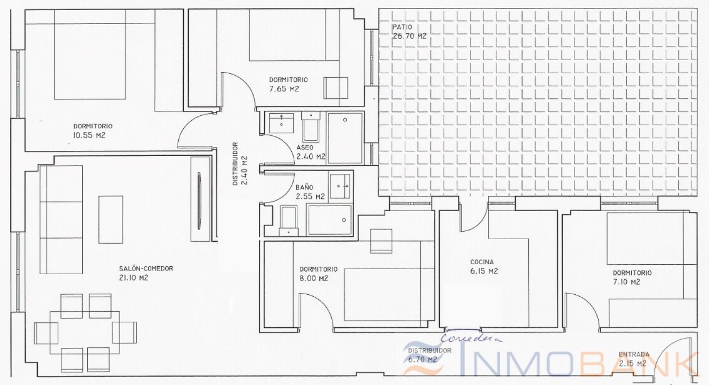 Metros útiles: 90,00 m2Metros construidos: 100,00 m2Dormitorios: 4Baños: 2Sin garajeSituado en la planta: 1º