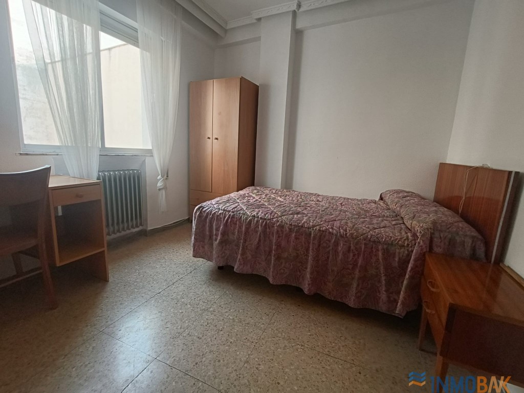 Habitación en alquiler para estudiantes, amplia, exterior y muy luminosa. Con mucha capacidad de almacenaje con armario grande. Calefacción central por lo que los gastos son mínimos.
